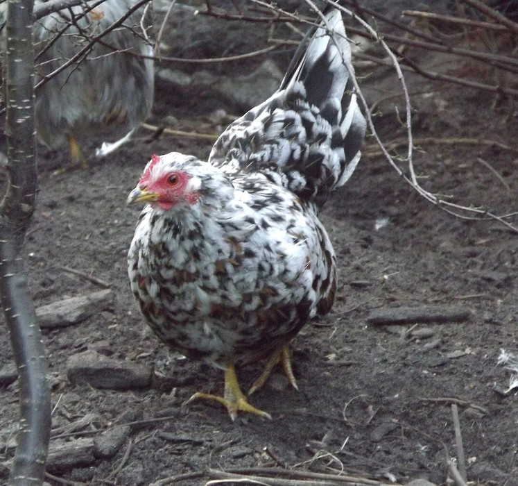 Im selben Jahr erreichte mich ein Notruf: Zwei Seidenhuhnmixhennen sollten geschlachtet werden. Da die beiden in der Nähe von Jennys kleiner Tierecke untergebracht waren, holte ich sie in Absprache mit der damaligen Eigentümerin, die sie schlachten wollte, ab. Seit dem leisten sie unseren Chabos Gesellschaft. Schließlich wurde die Gruppe durch eine Chabo-Henne ergänzt, die plötzlich von einem Ehepaar in ihrem Garten gefunden wurde - wie sie dorthin kam, ist bis heute nicht klar.