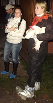 Begleitet vom Fernsehteam des NDR, der gerade eine Reportage über Rettet das Huhn dreht, beteiligten wir uns an der Portestaktion und "umzingelten" mit den anderen Demonstranten den Geflügelschlachthof. Wie von ähnlichen Demos bekannt, verlief auch diese friedlich und wurde mit einer Protestsuppe und einem Konzert abgerundet.