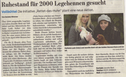 Weiterer Artikel über unsere künftige Hennenrettung erschienen. Auch dieser kann unter Presseberichte vergößert angesehen werden.